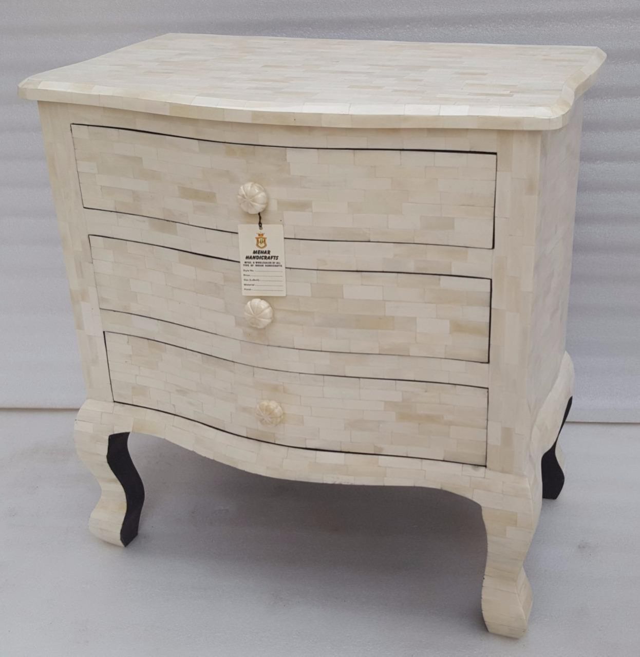 Handmade White Bone Inlay 3 Drawer Chest – Luxury Storage Cabinet